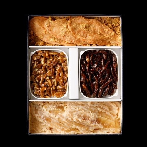 ふぐ笹干ぬか漬・粕漬・ごり佃煮・くるみ佃煮の詰合せです。あたたかいごはんと一緒に召し上がったり、酒の肴などお好みでお楽しみください。開封後は冷蔵庫で保存し、お早めにお召し上がりください。