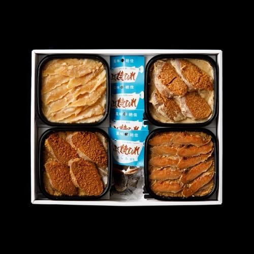 ふぐ焼きひれ・ふぐぬか漬・粕漬スライス・ふぐの子ぬか漬・粕漬スライスの詰合せです。ふぐ焼きひれを熱燗に入れひれ酒とぬか漬・粕漬をいっしょにお楽しみください。開封後は冷蔵庫で保存し、お早めにお召し上がりください。